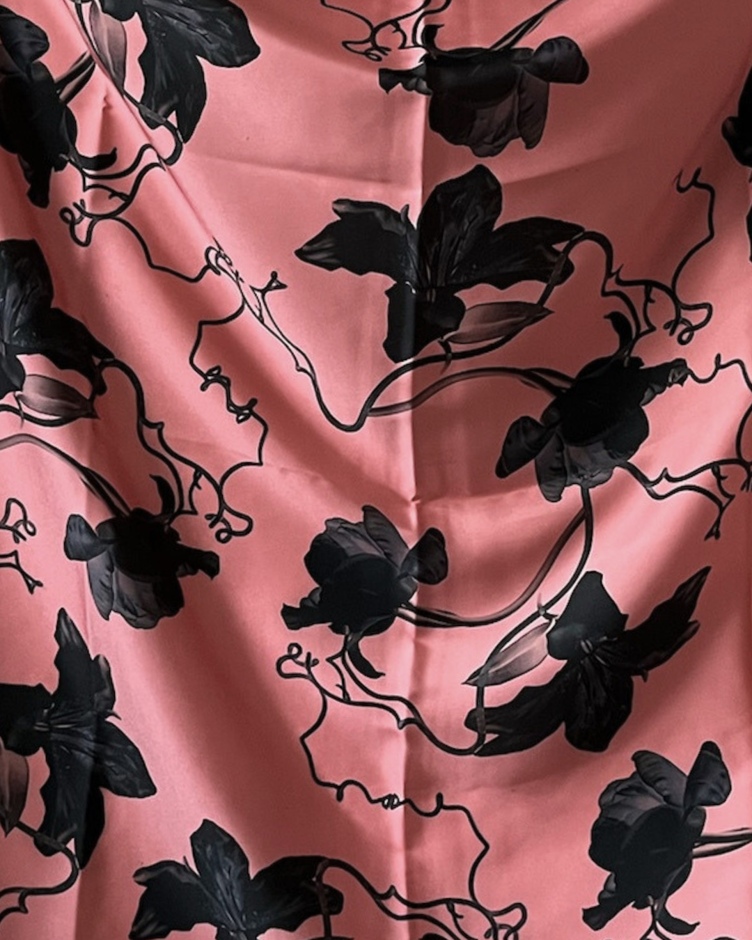 Pañuelo estampado flores azules con fondo rosado en tres tamaños.
