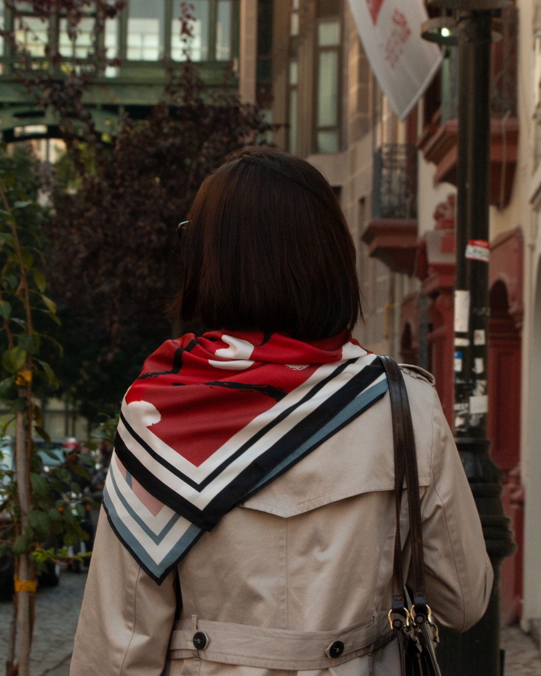 Pañuelo estampado rojo y blanco en tres tamaños.